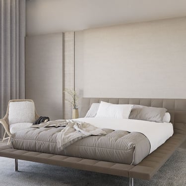 U ovoj spavaćoj sobi dominiraju neutralne i zemljane nijanse, stvarajući smirujući i opuštajući ambijent.