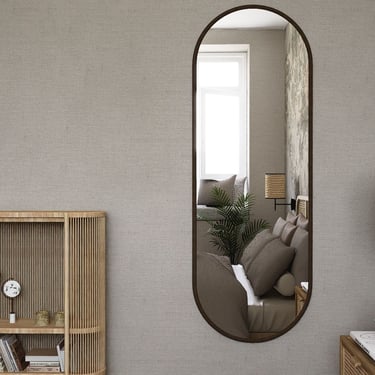 Dva ogledala nepravilnog oblika iznad umivaonika unose suptilan interes i karakter, naglašavajući jednostavan, ali sofisticiran dizajn kupaonice.